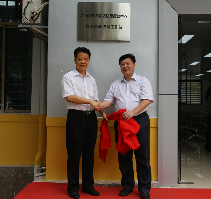 2016年7月13日上午,自治区信访局与自治区司法厅共同在自治区信访局机关举行了“广西法律援助中心自治区信访局工作站”揭牌仪式,这是广西法律援助机构在全区信访机构设立的首个法律援助工作站,标志着全区法律援助和信访工作的“牵手”正式启动。揭牌仪式后,两厅局在自治区信访局机关召开了“信访法治工作座谈会”,就法律援助工作站的建立、运行管理等进行了工作座谈,共同研究我区信访法治化建设新问题、新情况,探讨推动我区信访法治化进程的新思路、新举措。